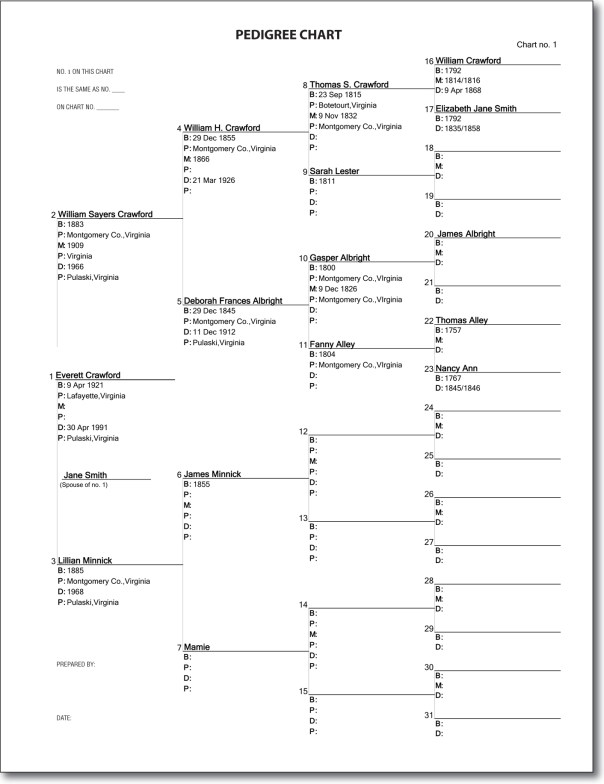Download a blank Pedigree Chart and fill it in with all the information you presently know. This is your starting point.