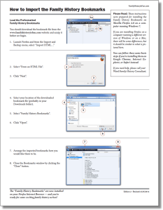The easiest way to use these Family History Websites is to have them installed as a folder on your Internet Browser. If you know how to do this (or know someone who can do it for you), you can go ahead and do it now by clicking on the green box below. Otherwise, just bookmark our page of website links and use that.