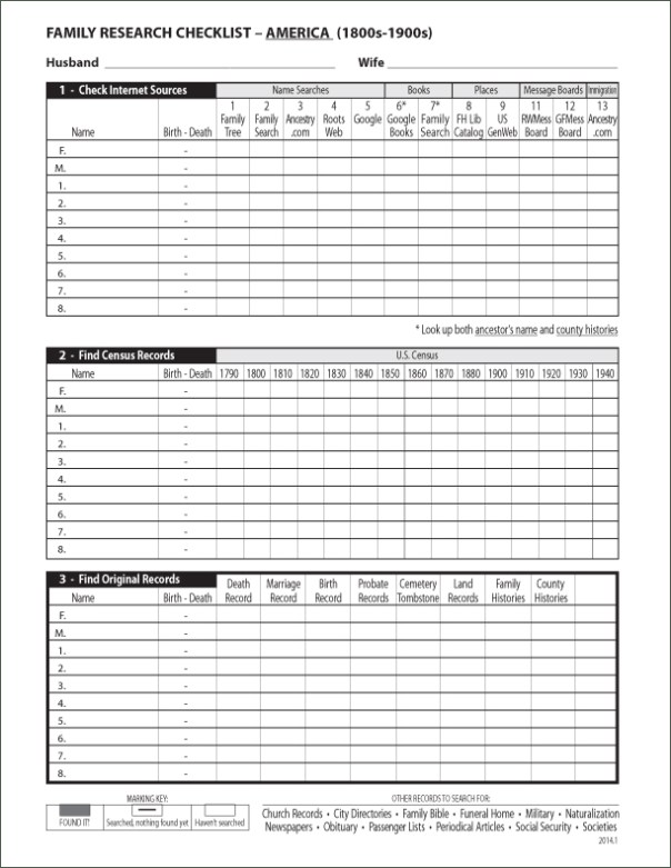 of This Family Research Checklist to choose from:
