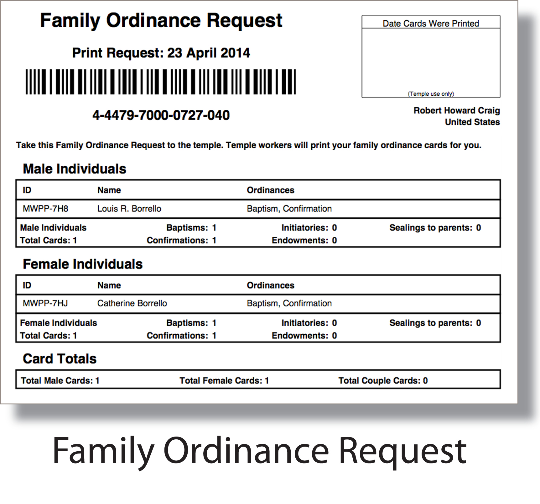 Let one of the temple workers know you’ve got a Family Ordinance Request form, and they’ll have you go to the office so they can print off the family ordinance cards for you. It’s a good idea to arrive 20-30 minutes before your session to give them time to do this.